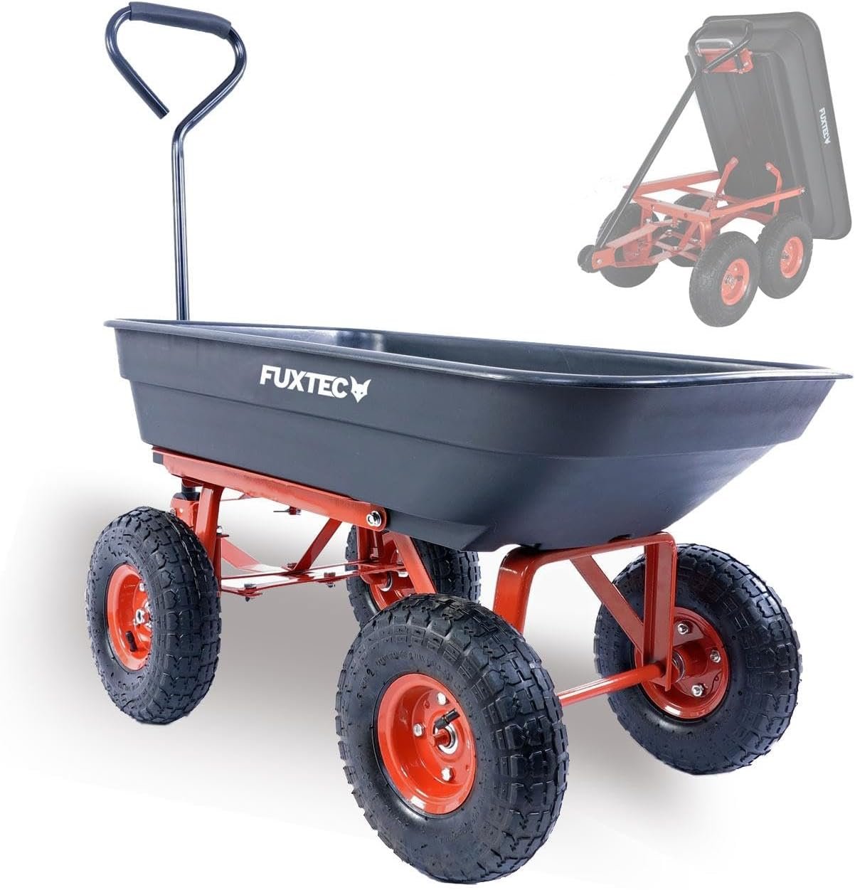 Con un marco metálico excepcionalmente resistente, soporta una carga máxima de hasta 300 kg. Además, su cubo de plástico con función de volcado integrada permite manejar cargas de hasta 150 kg de manera eficiente. Las cuatro ruedas neumáticas de gran tamaño ofrecen un sistema antivuelco, garantizando estabilidad en todo momento.