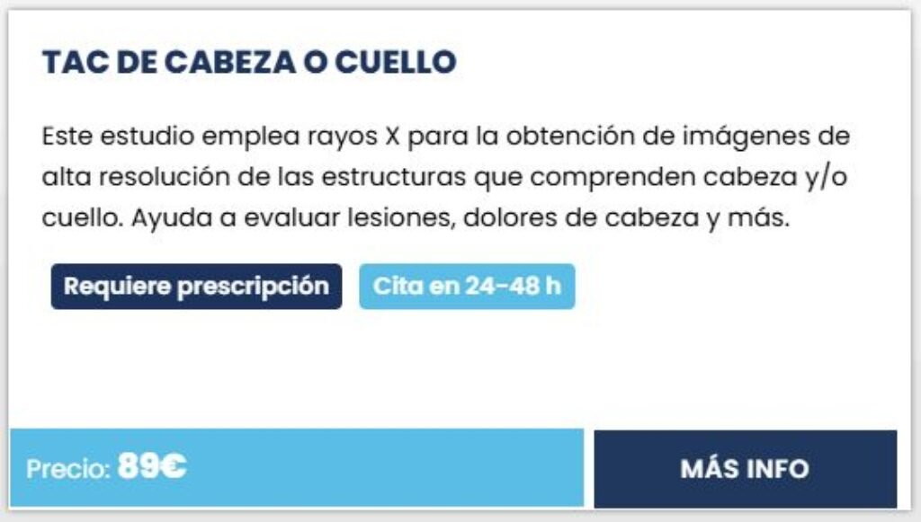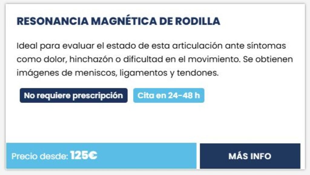 - Pruebas disponibles: Resonancia magnética, ecografía, TAC, mamografía y rayos X.